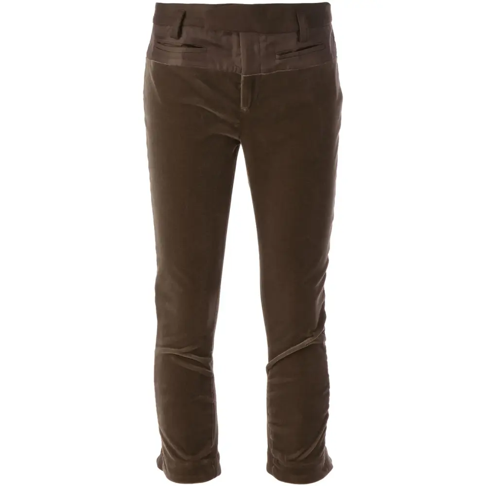 Коричневые укороченные брюки из хлопкового микса с эффектом велюра от Haider Ackermann.