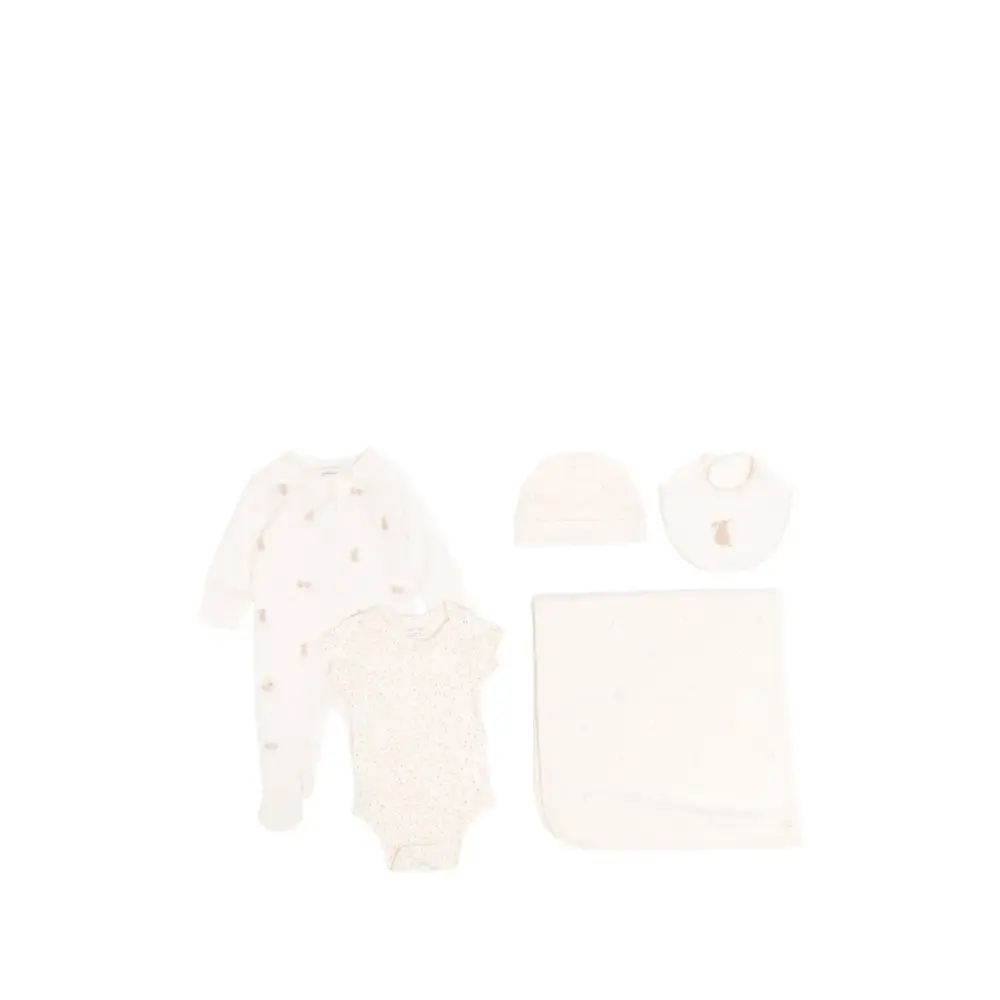 • одеяло, нагрудник, шапка, боди и комбинезон для сна