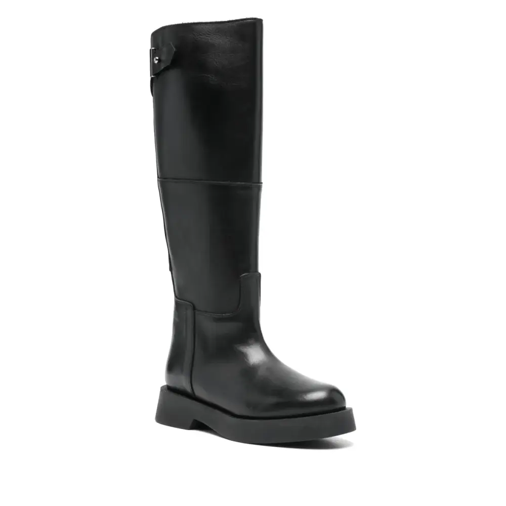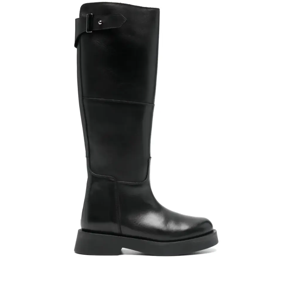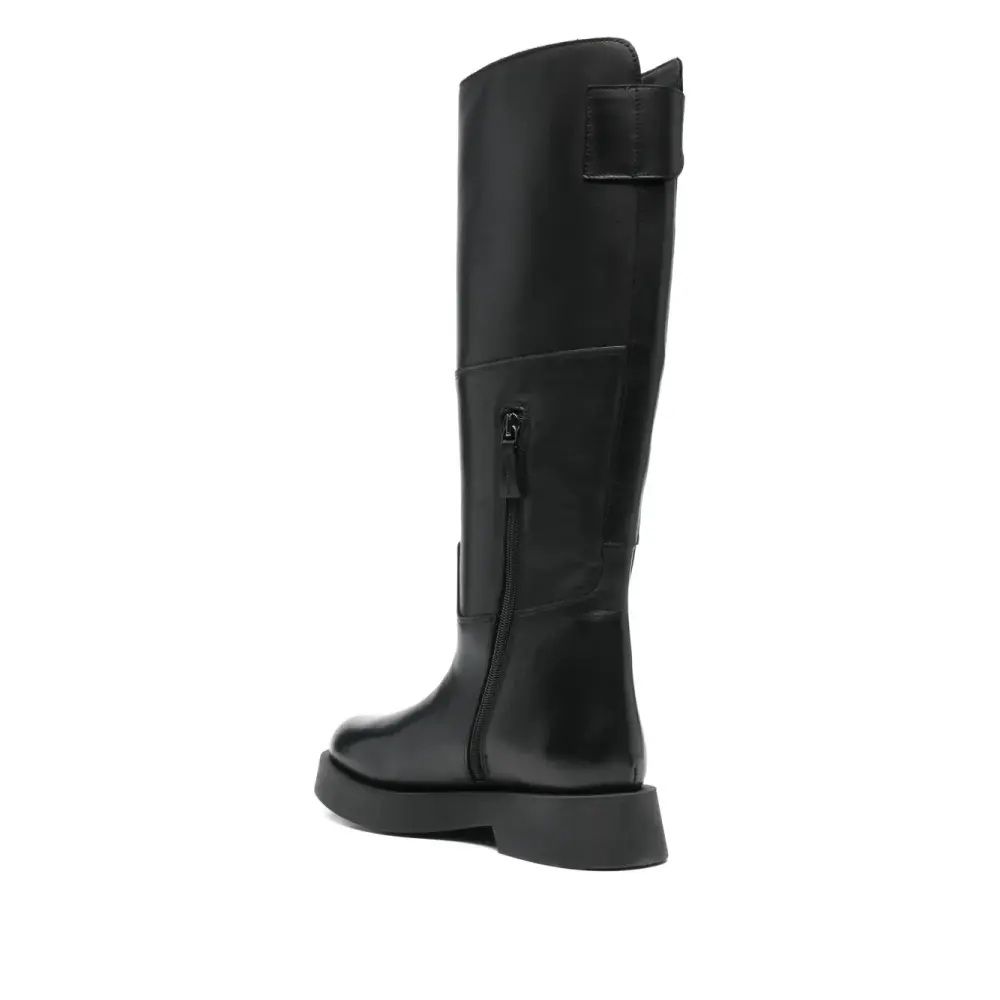 черный цвет, панельный дизайн, застежка-молния сбоку, ремешок с пряжкой, плоская подошва, круглый носок