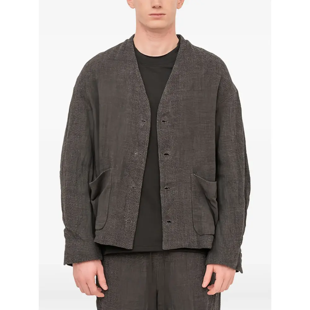 серый цвет, застежка на пуговицы, накладные карманы, длинные рукава