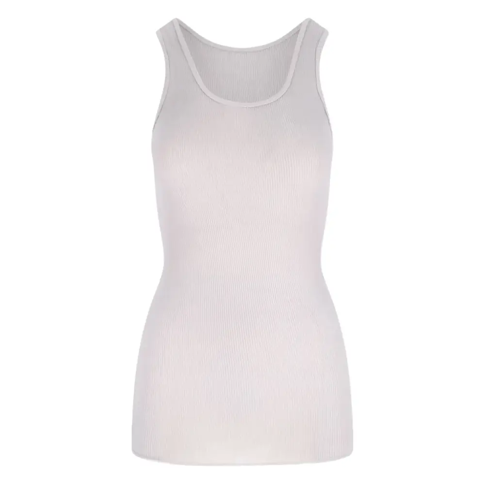 Серый в рубчик трикотажный топ без рукавов с круглым вырезом и прошивкой
