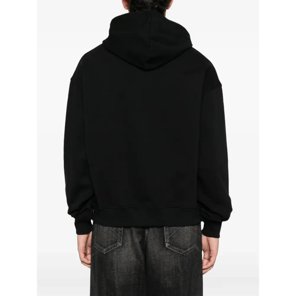 чёрная худи на кулиске с карманом кенгуру, эластичными манжетами и эластичным подолом