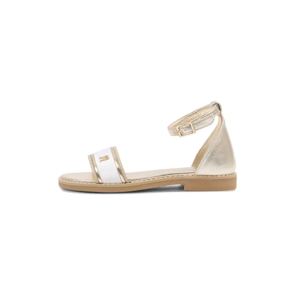 застежка-пряжка с логотипом золотистого оттенка, ремешок на щиколотке, металлизированная отделка