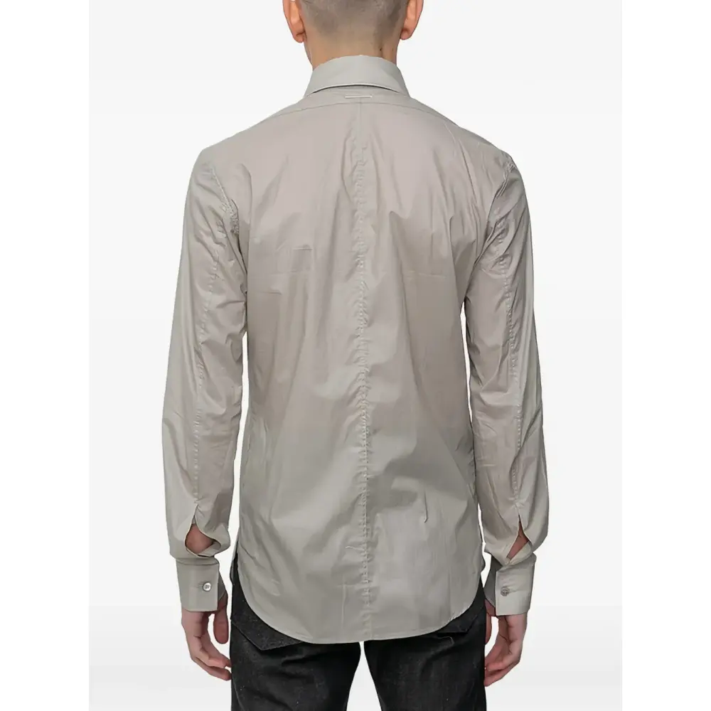 серый цвет, длинные рукава, застёжка на пуговицы, классический воротник