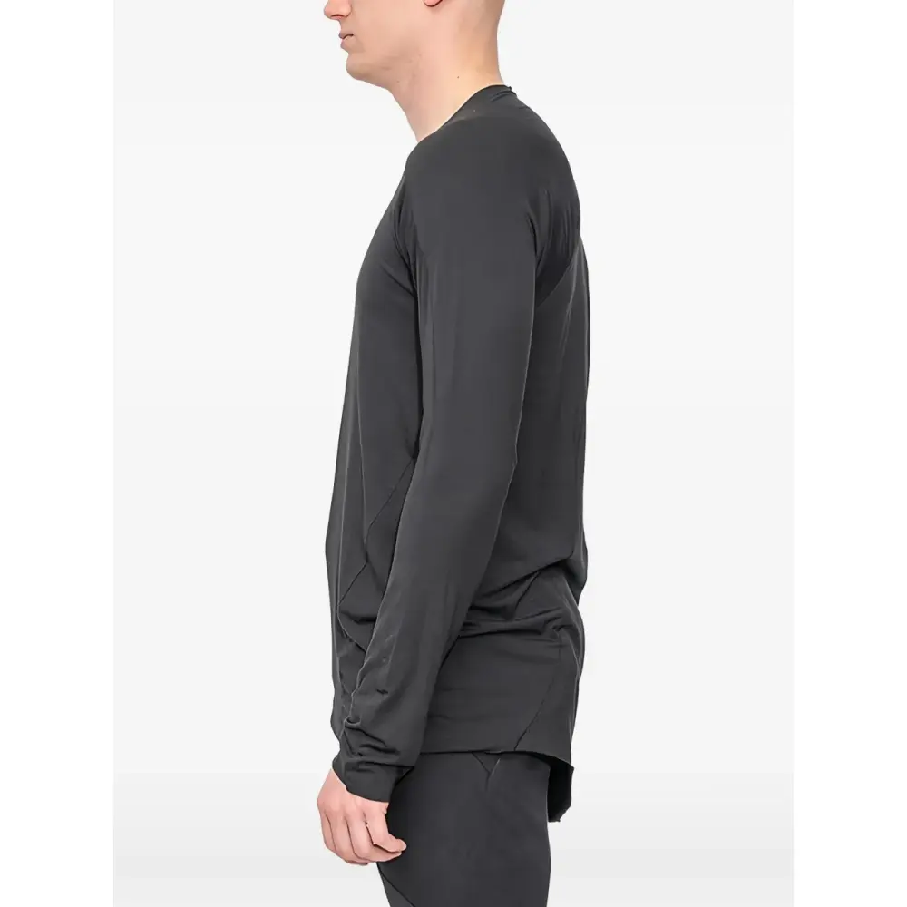 черная асимметричная туника с длинными рукавами, круглым вырезом и контрастными вставками
