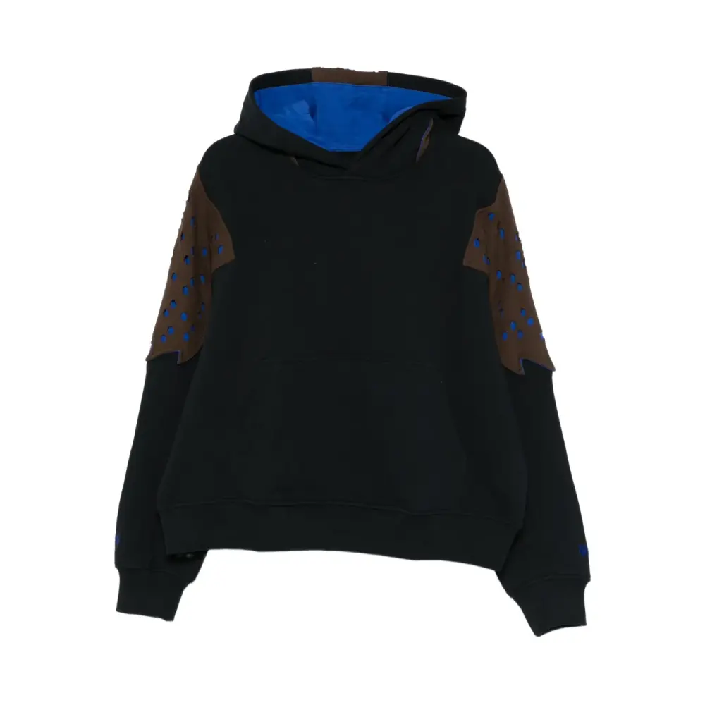 Синий и коричневый Панельный дизайн Перфорированные детали Капюшон Карман-кенгуру