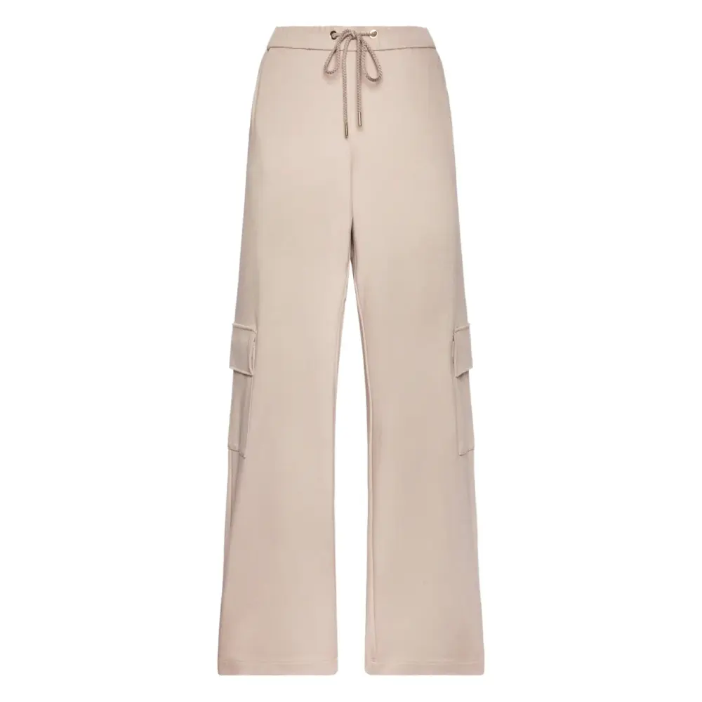 бежевые брюки с эластичным поясом на завязках, боковыми карманами и задними карманами