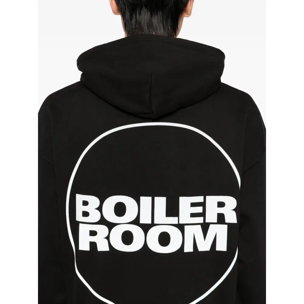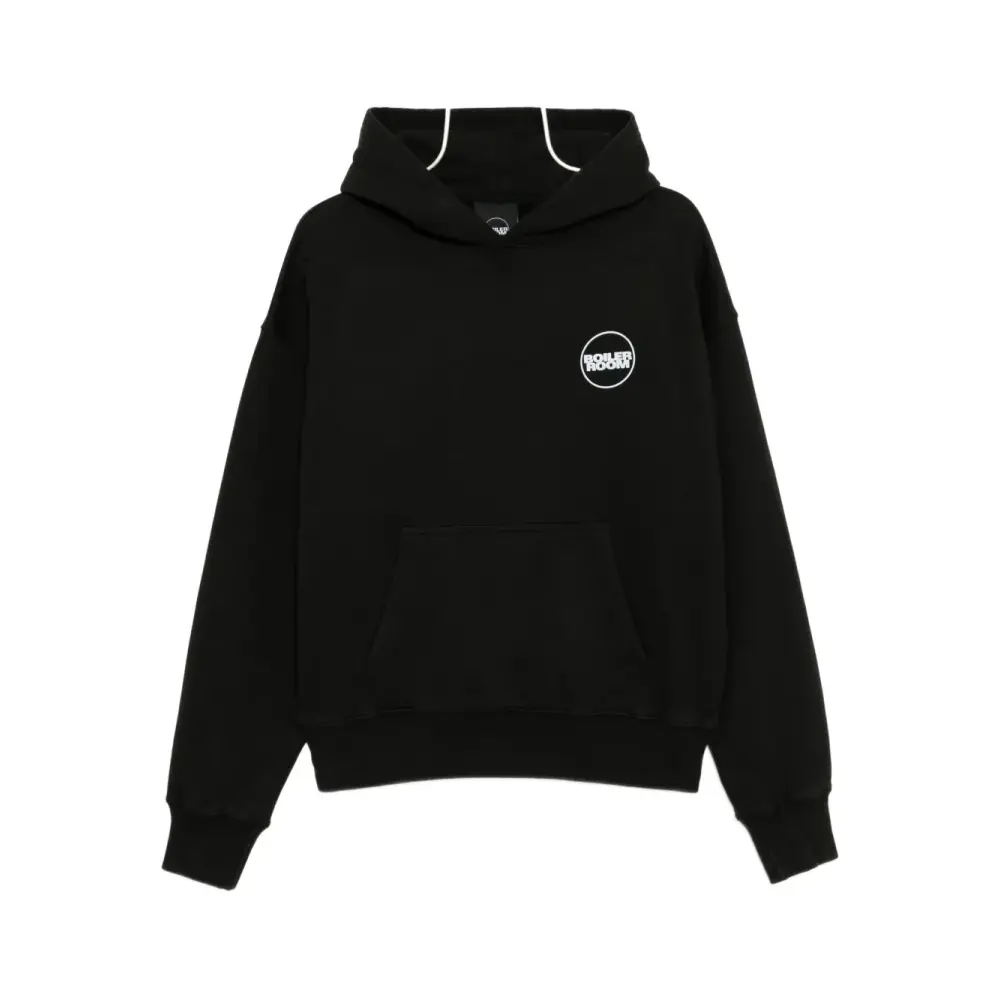 черная толстовка с логотипом, кулиской на капюшоне, карманом-кенгуру, длинными рукавами и ребристыми манжетами