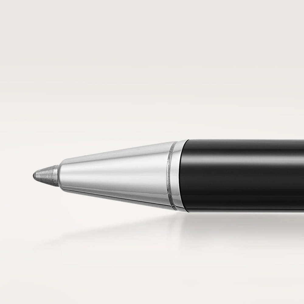 Ручка-роллер Santos de Cartier, малая модель, корпус из черного лака, детали с отделкой из палладия и винт с отделкой из желтого золота 18 карат (750/1000).