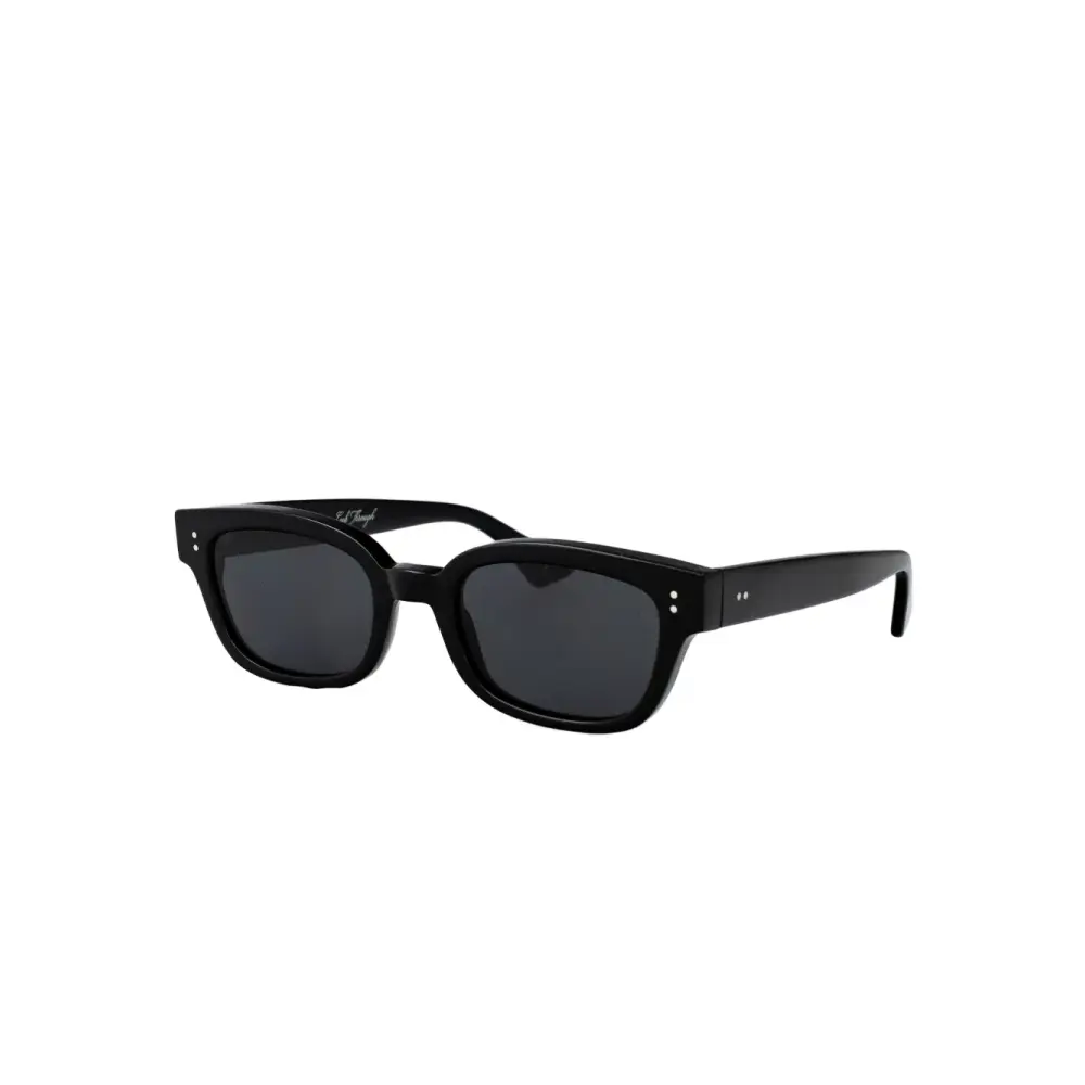 черная прямоугольная оправа, отделка заклепками, тонированные линзы, логотип на дужке, прямые дужки. В комплекте идет защитный футляр.