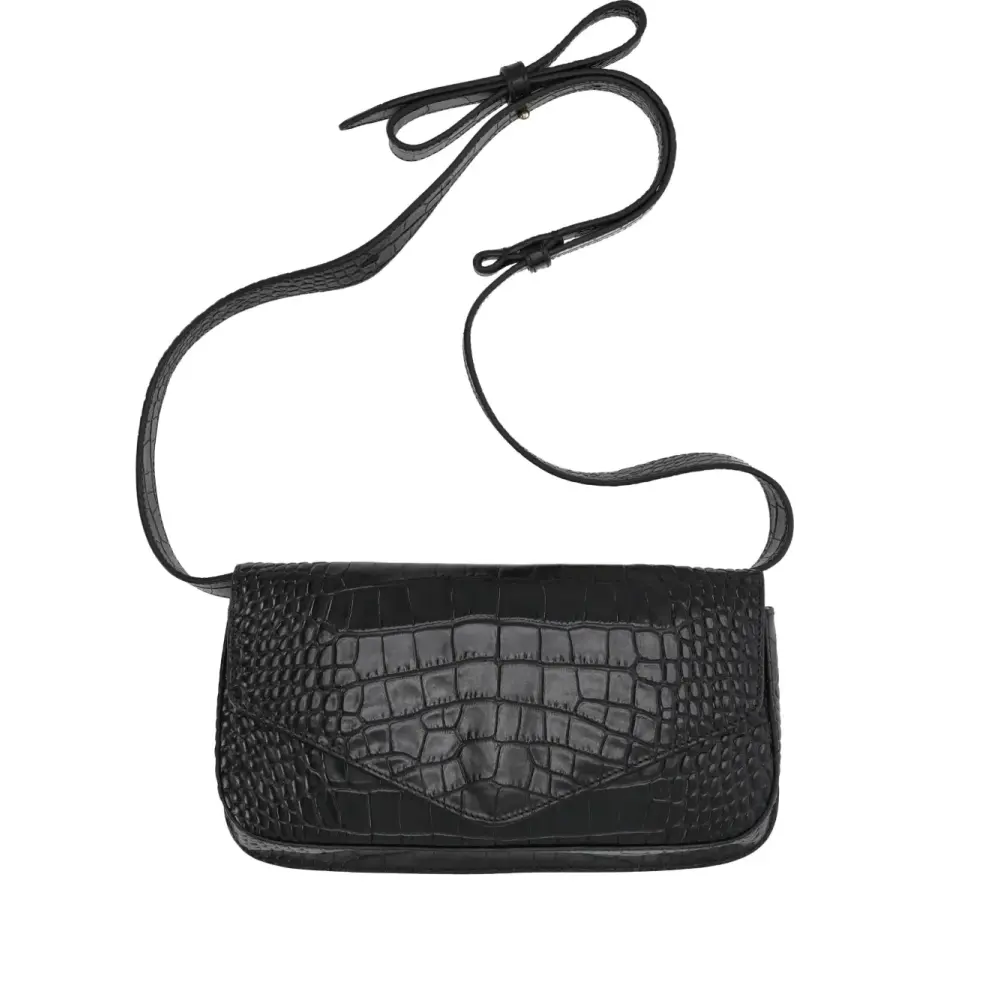черная сумка с эффектом крокодиловой кожи, регулируемым плечевым ремнем и верхним клапаном