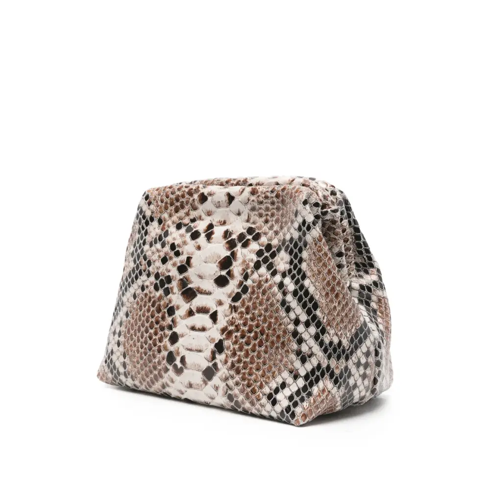 топ цвета «тауpe» с имитацией змеиной кожи, верхняя молния, наплечный ремень