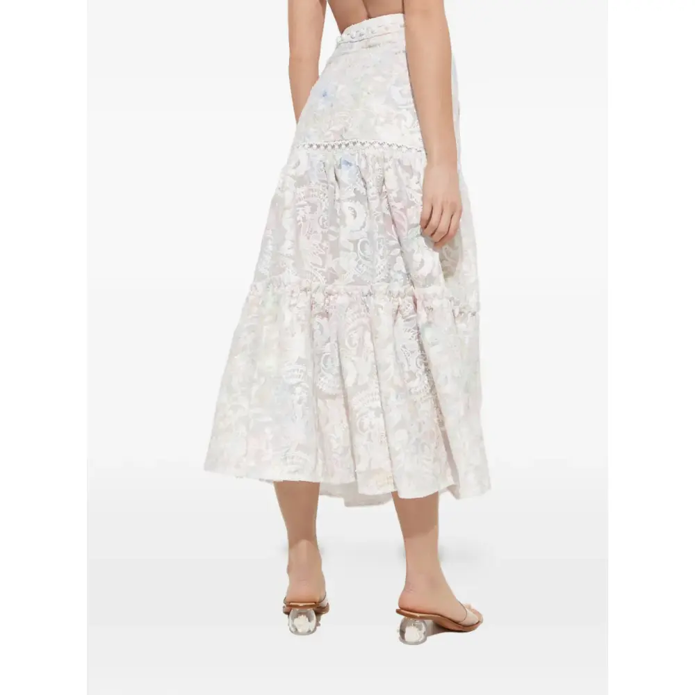 белое макси-платье с цветочным принтом, застёжкой-молнией и оборчатым подолом