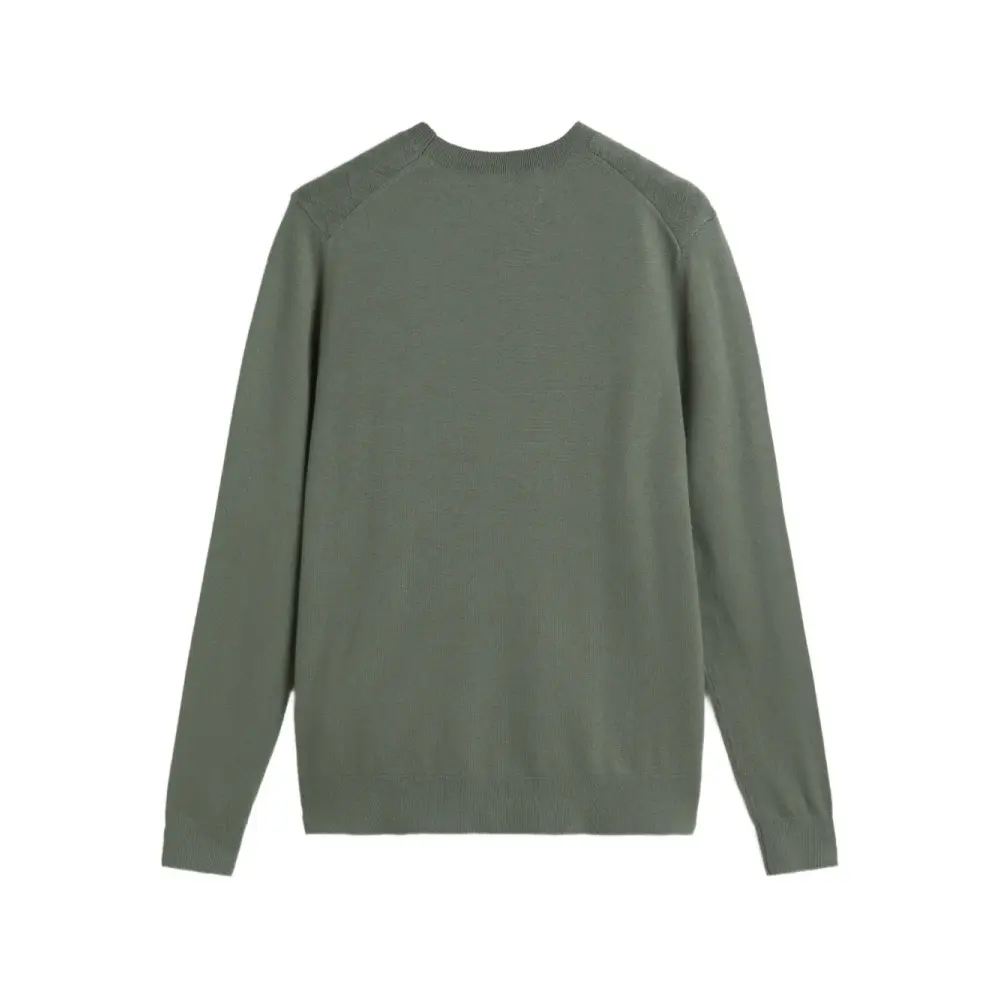 зеленый джемпер с круглым вырезом, длинными рукавами, ребристым краем и ребристыми манжетами