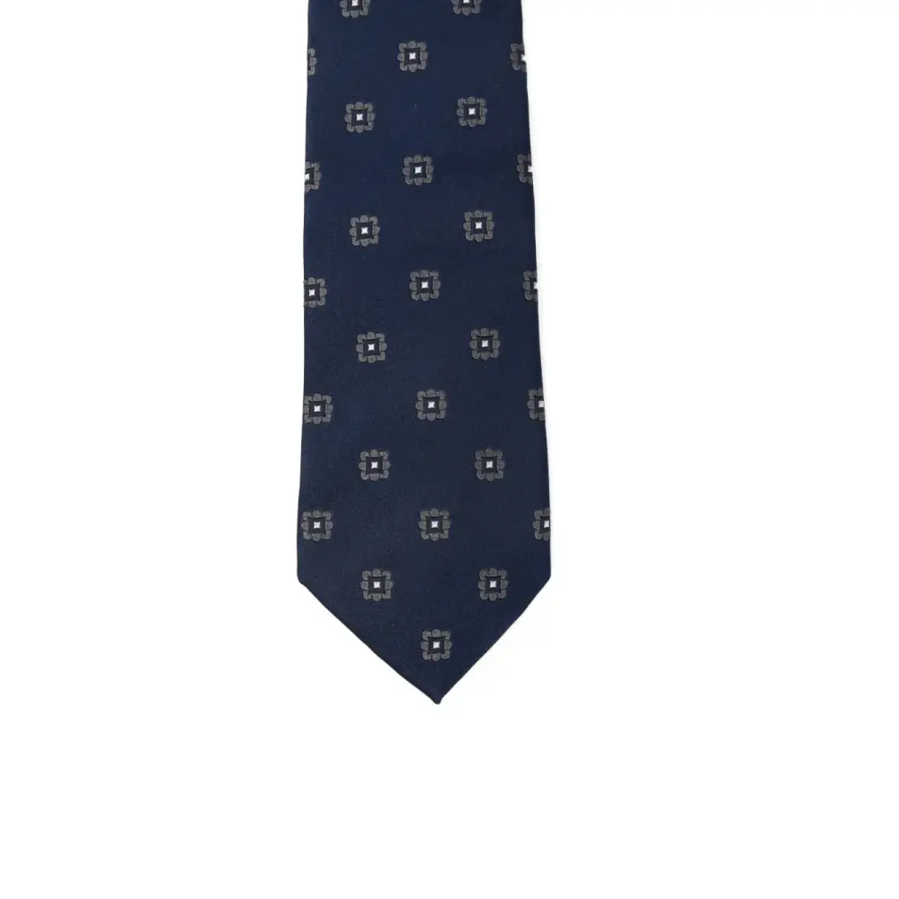 тёмно-синий галстук с цветочным узором и заострённым концом