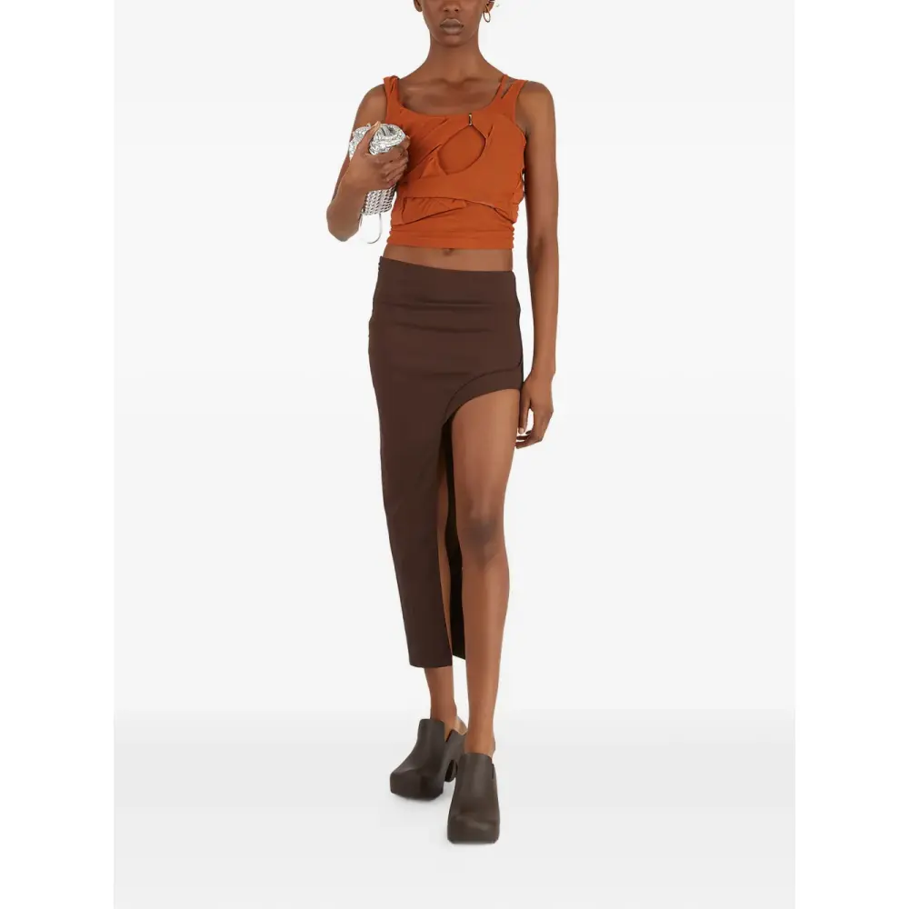 оранжевый топ с круглым вырезом, наложенными деталями и бретелями