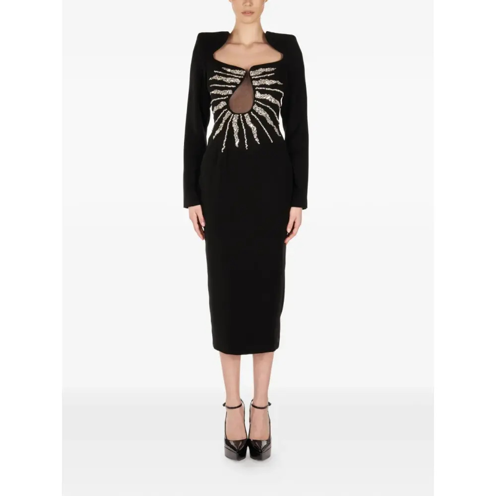 чёрный цвет, украшения, вырезные детали, длинные рукава, застёжка-молния сзади, разрез сзади