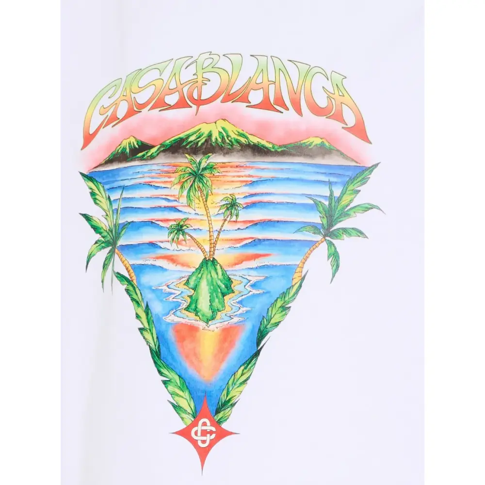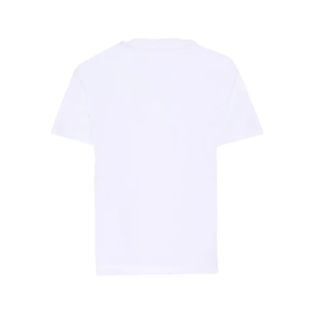 белая футболка с короткими рукавами, круглым вырезом и принтом