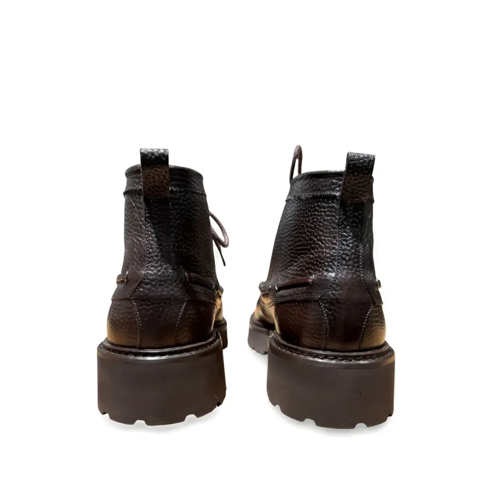 коричневая зернистая текстура, шнуровка, рифленая подошва