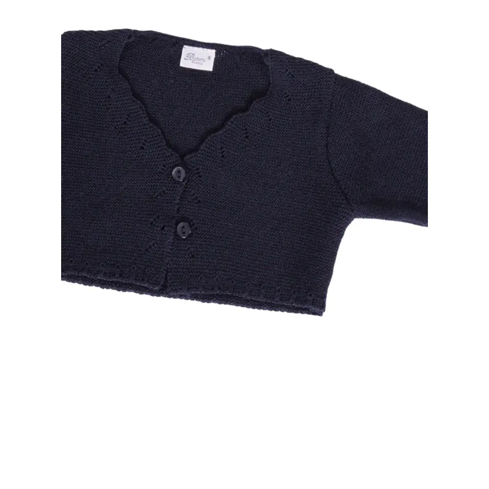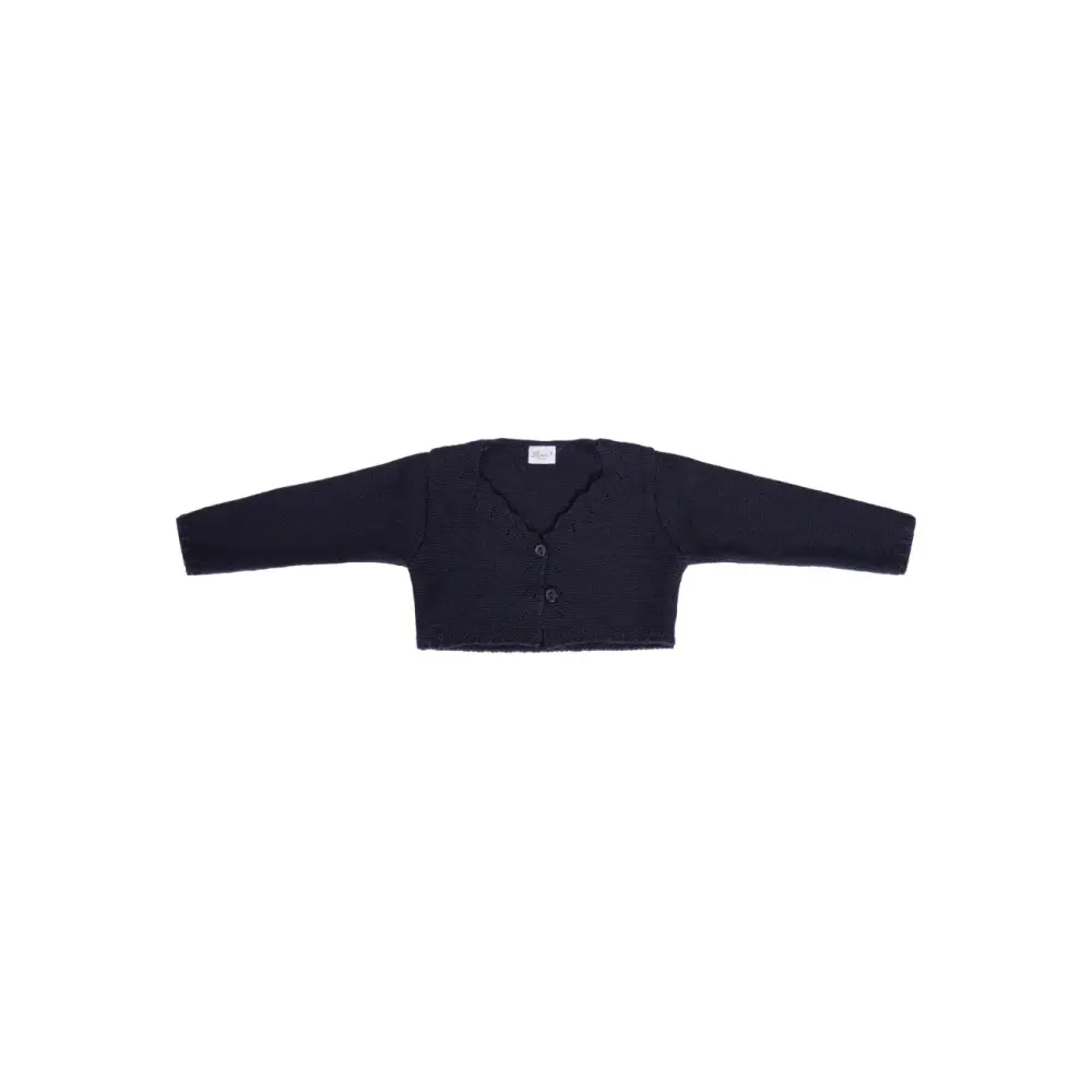 синий кардиган с зубчатой отделкой, застежкой на пуговицы спереди и длинными рукавами