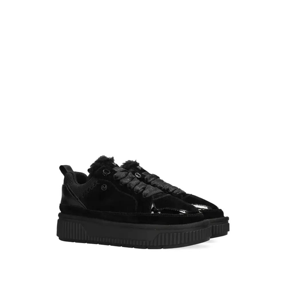 черная отделка из искусственного меха, платформа, шнуровка спереди, петля сзади, рифленая подошва