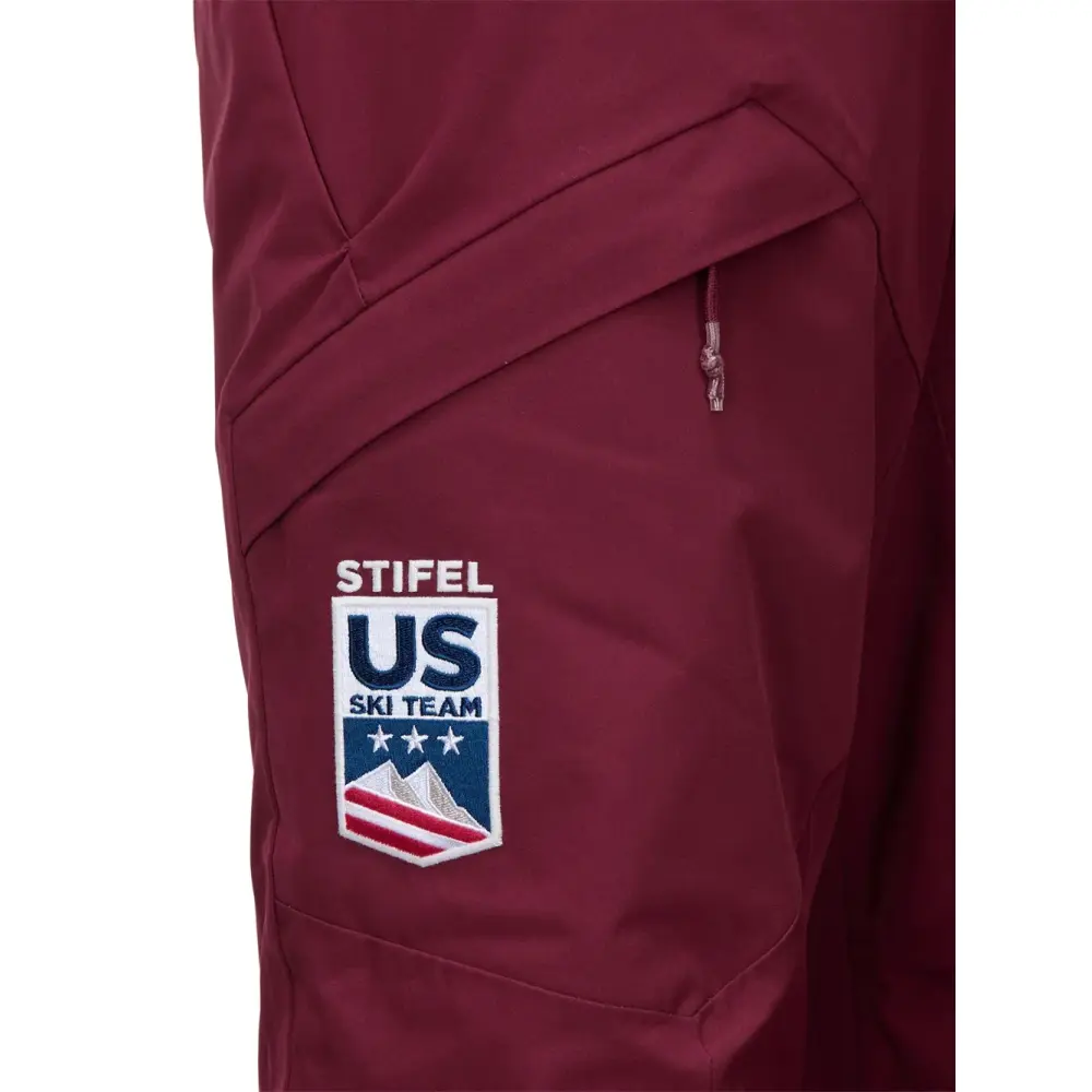 красный гранатовый патч с логотипом, боковые карманы на молнии, подтяжки сзади, логотип в виде надписи, шлевки для ремня