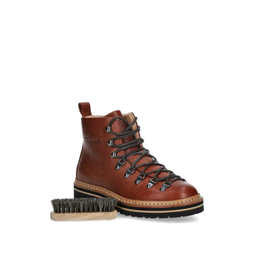 коричневые ботинки на каблуке с петлей для надевания, рифленой подошвой и шнуровкой