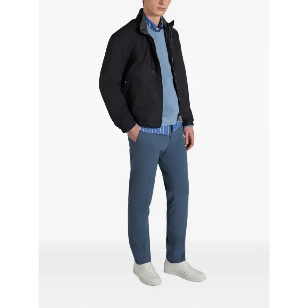средне-синий цвет, полосатый узор, застежка на пуговицы, воротник на пуговицах, накладной карман на груди, длинные рукава