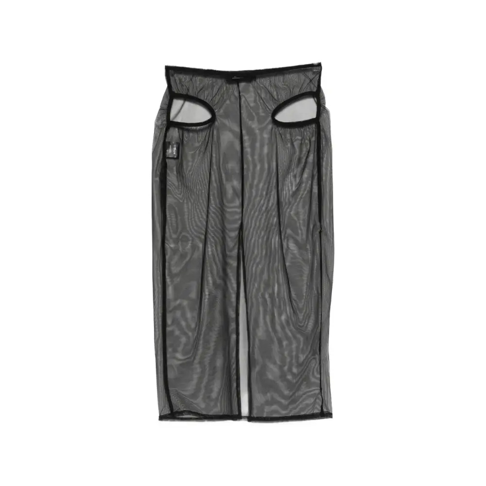 черное миди-платье с разрезом спереди, вырезами, эластичным поясом и отделанными краями