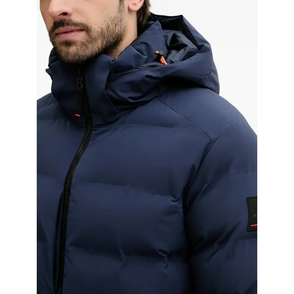 темно-синяя стеганая куртка с капюшоном, нашивкой с логотипом, застежкой-молнией и эластичными манжетами