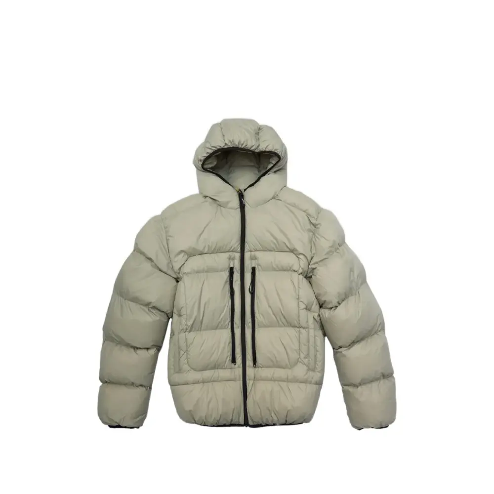 нейтрального цвета худи с принтованным логотипом и застежкой на молнии