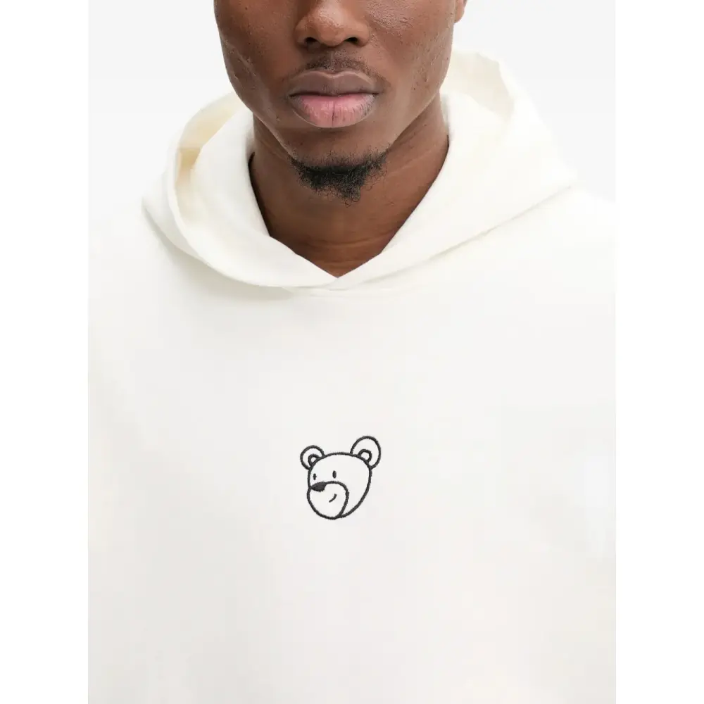 бежевый худи с принтом медвежонка, карманом-кенгуру спереди, длинными рукавами и ребристым низом