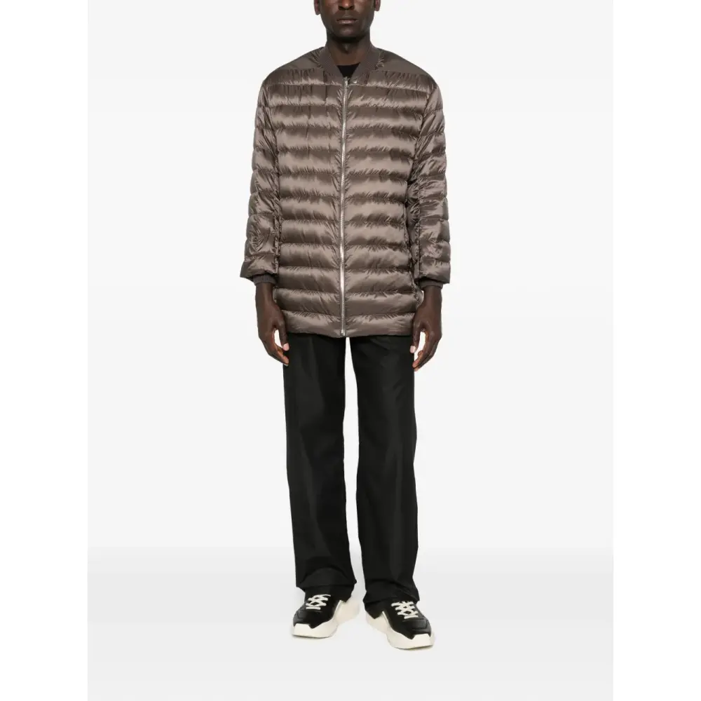 коричневый цвет, ребристый нижний край, застежка на молнию спереди, стеганый дизайн, нашивка с логотипом-треугольником