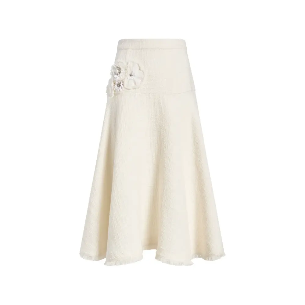 хлопок гардения, цветочные украшения, фактурная отделка, бахрома по краю, силуэт А-силуэта