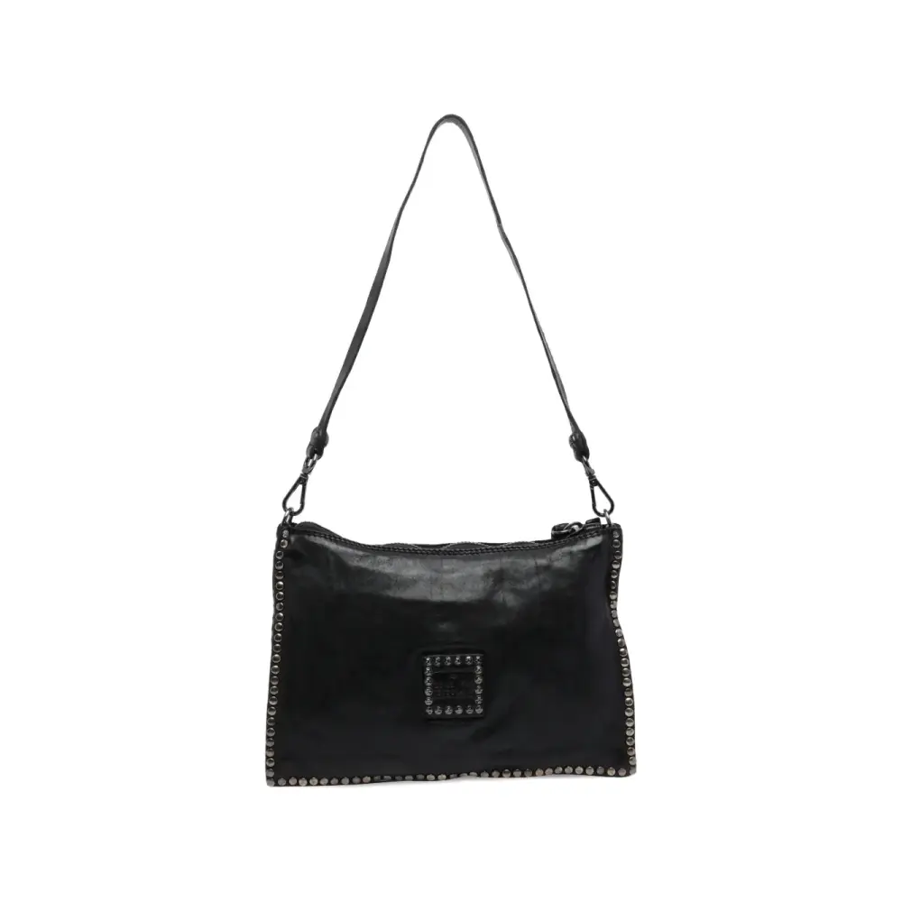 черный регулируемый и съемный ремень через плечо, съемный плечевой ремень, застежка на молнии, внутренний карман на молнии, украшение заклепками