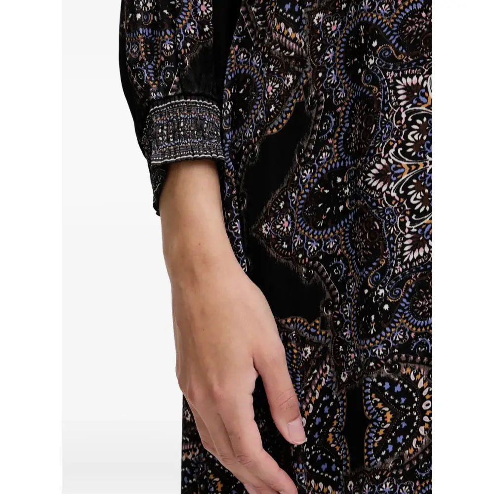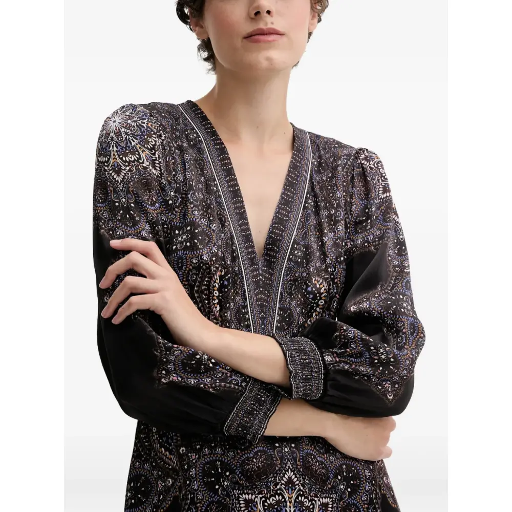 чёрный с графическим принтом, V-образный вырез, длинные рукава, боковые карманы