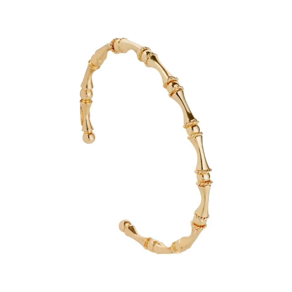 манжета открытого типа золотистого оттенка с бамбуковым узором и резными деталями