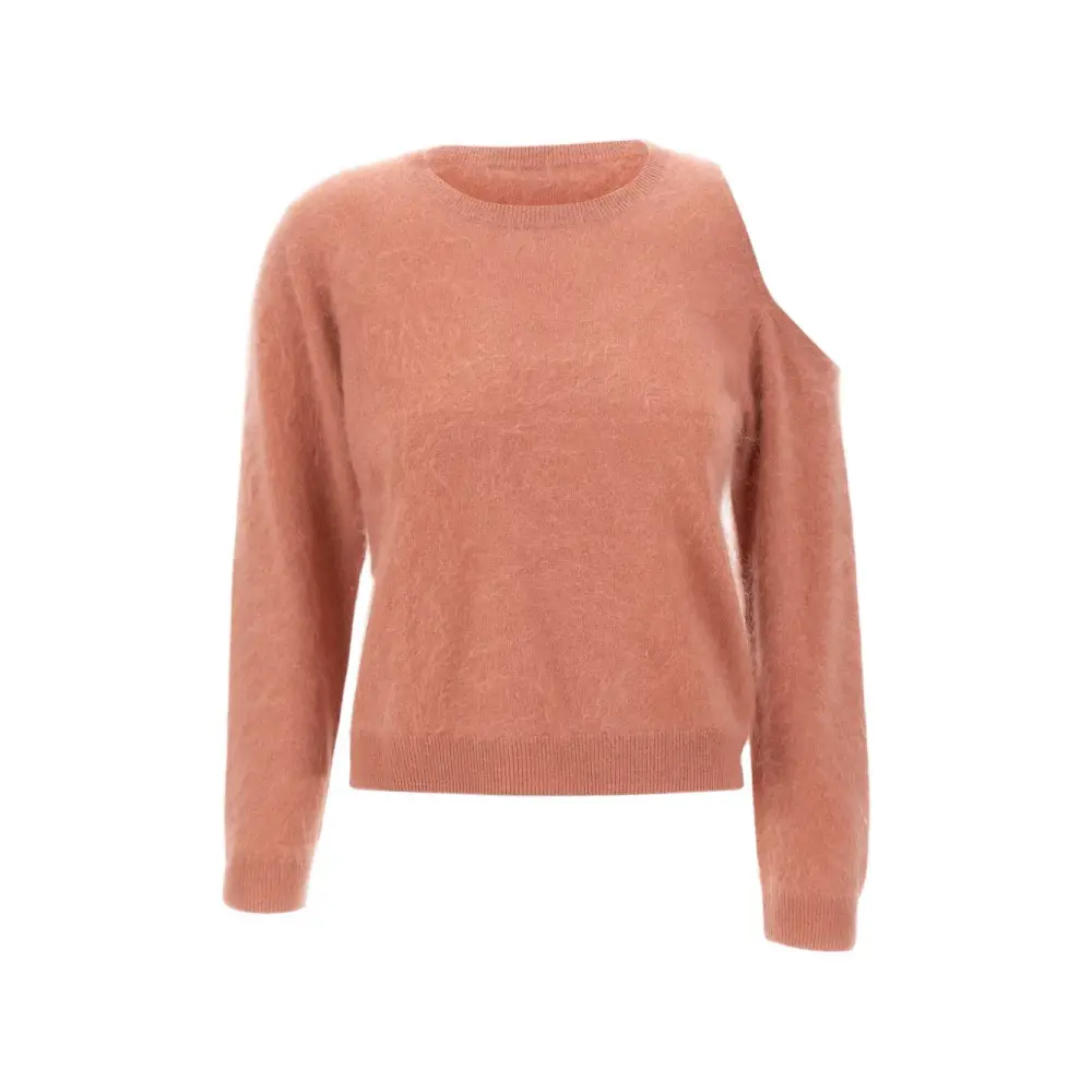 розовая с эффектом брашированного текстурирования, вырезами на плечах, рубчатой отделкой, круглым вырезом и длинными рукавами