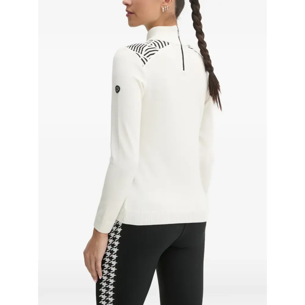 бежевый свитер с графическим принтом, узорчатыми деталями, воротником-гольф, длинными рукавами и нашивкой с логотипом