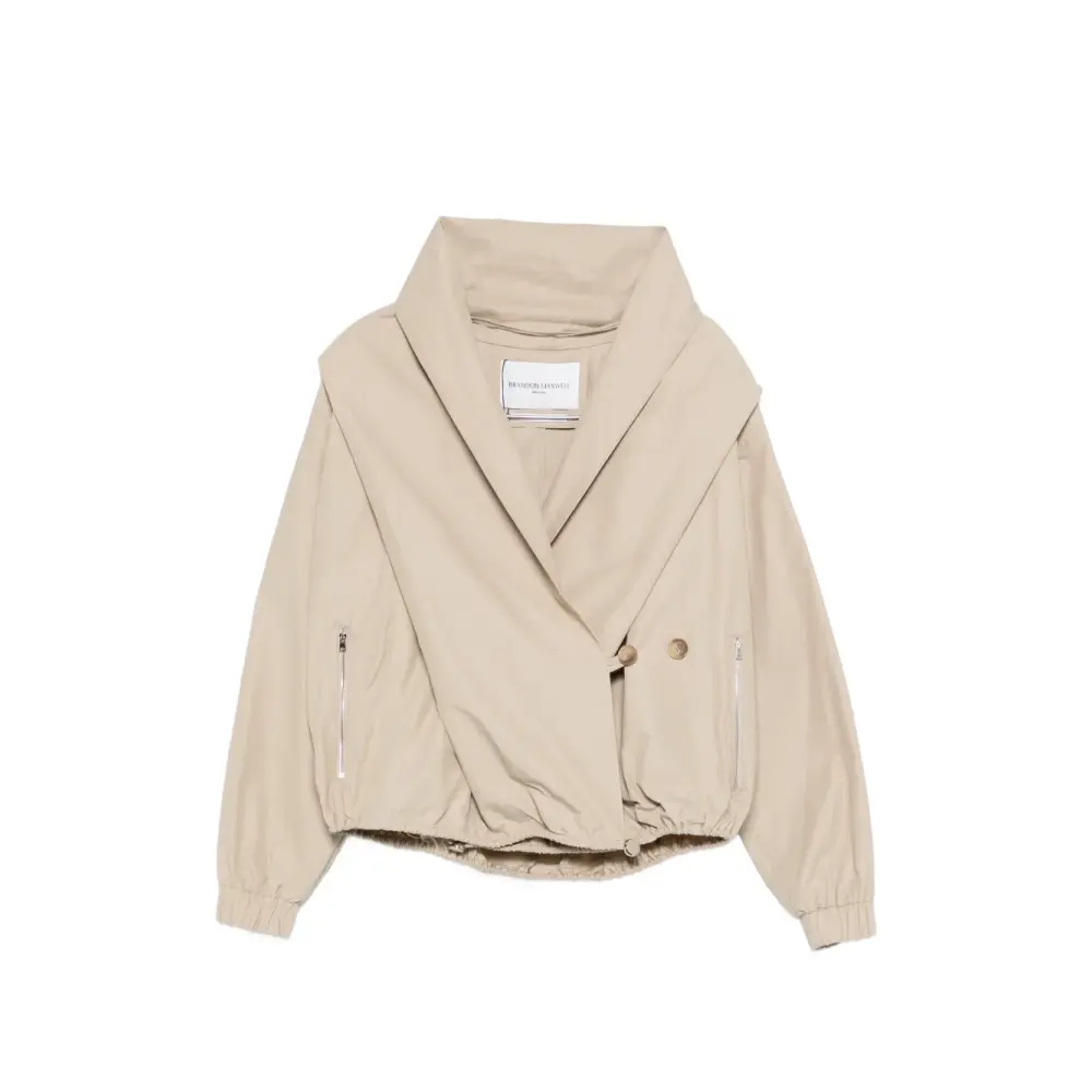 двубортная застежка на пуговицы, детали с молниями, эластичный пояс, эластичные манжеты