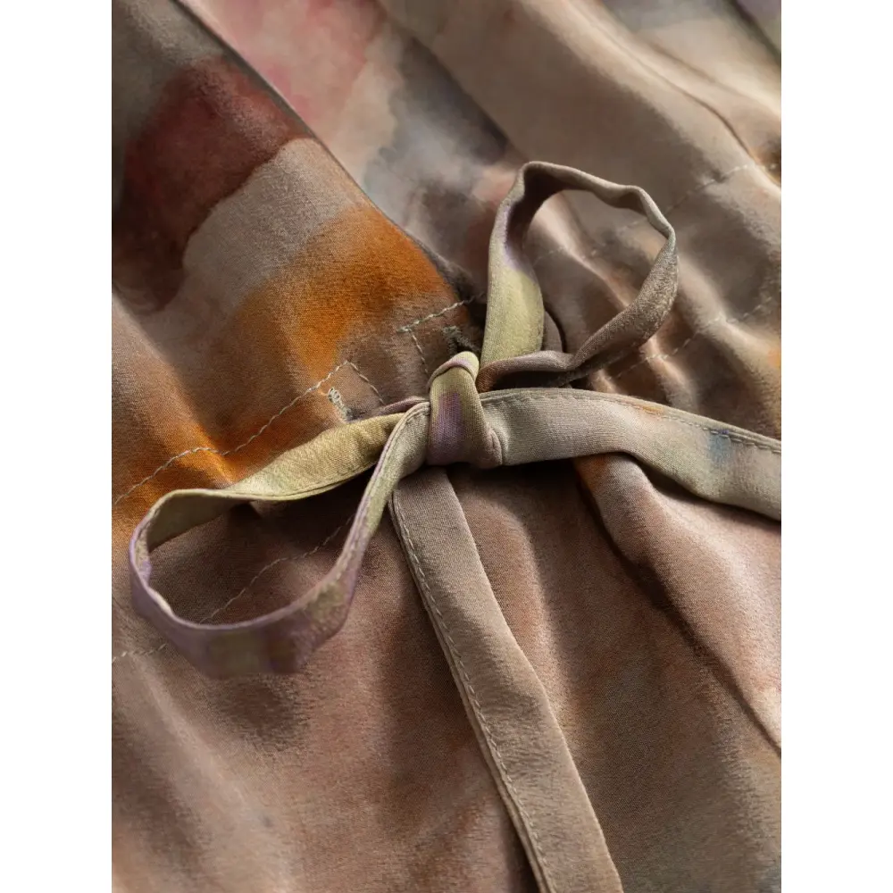 бежевый и разноцветный, пояс на талии, застежка-молния, длинные рукава, круглый вырез, присборенная отделка