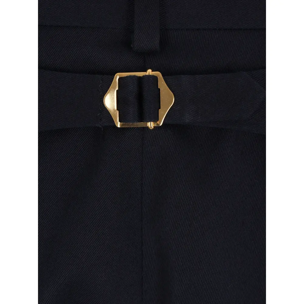 синий, фурнитура золотистого цвета, пуговица, подогнутый край, шлевки для ремня