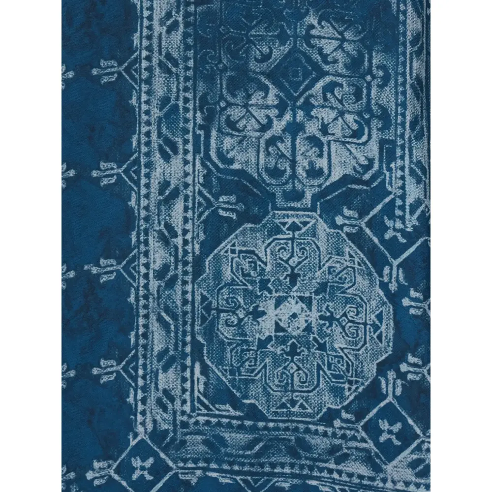 синий узорчатый топ с V-образным вырезом и рукавами три четверти