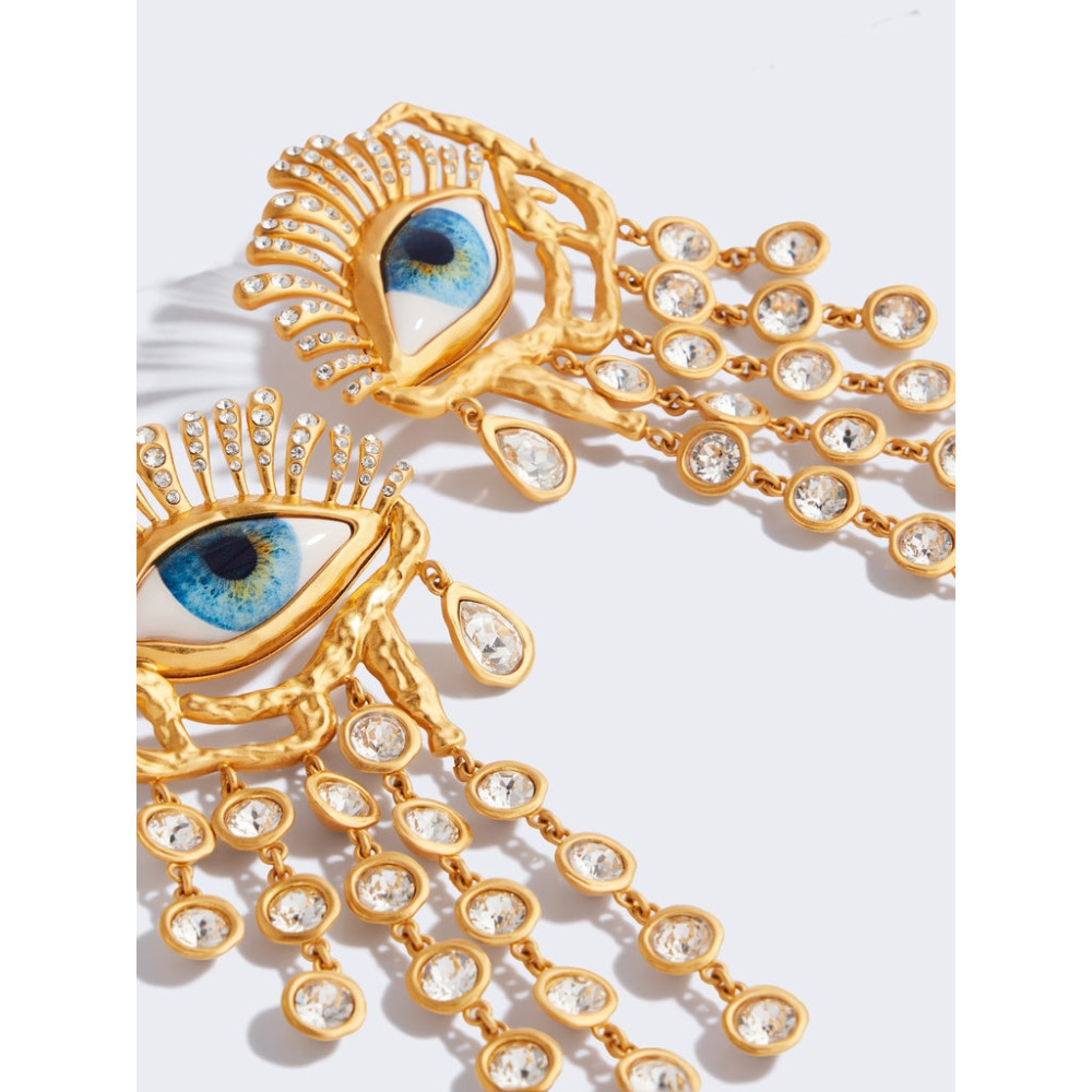 Серьги с подвеской из латуни с позолотой, тщательно украшенной стразами.