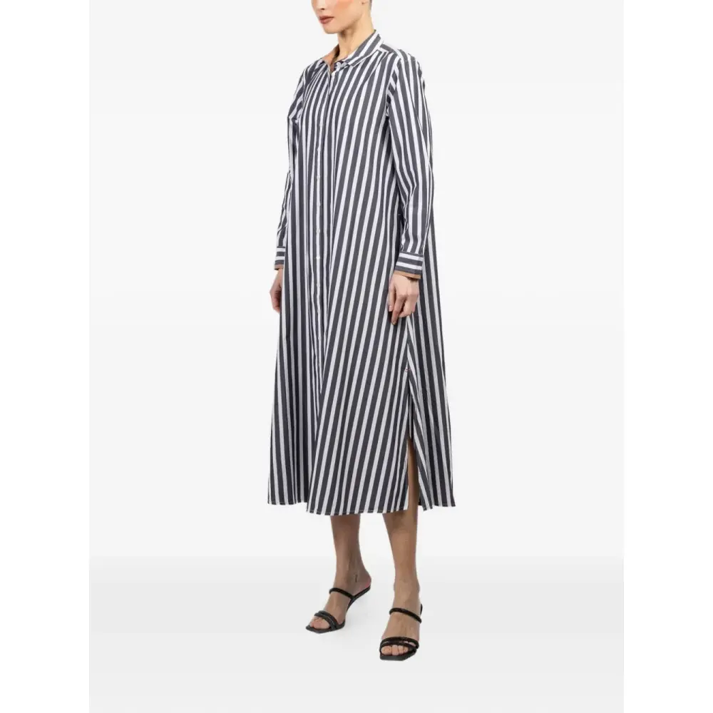 серо-белая рубашка в полоску с застежкой на пуговицы и длинными рукавами