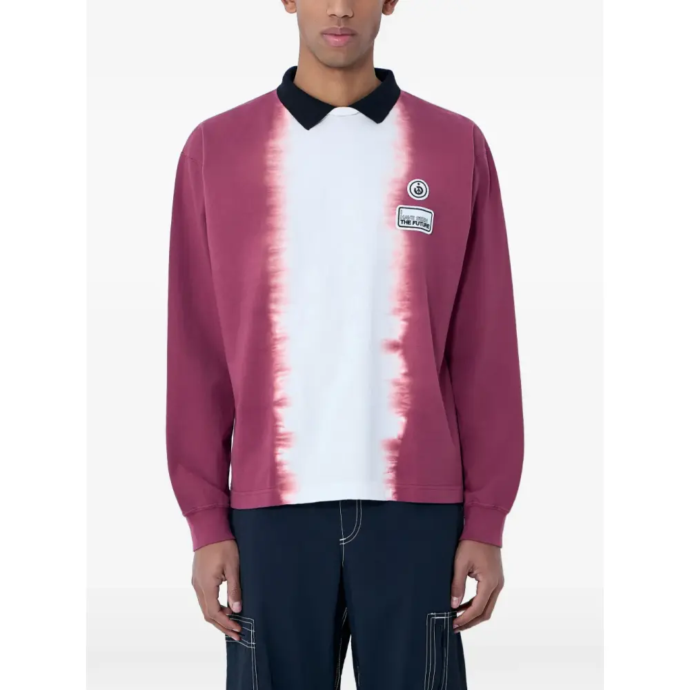 фиолетовая рубашка с острым воротником, нашивкой с логотипом и длинными рукавами