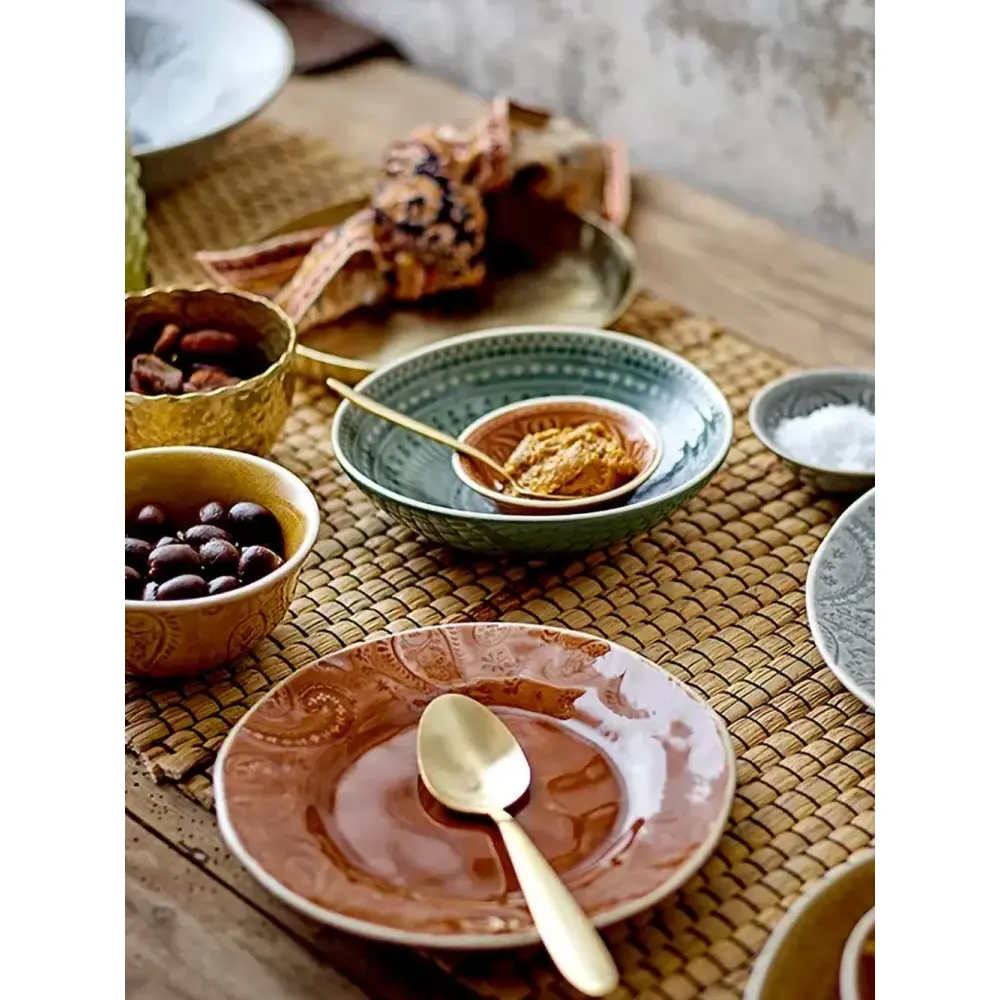 набор из четырёх предметов: нож, вилка, большая ложка, маленькая ложка, золотистого цвета