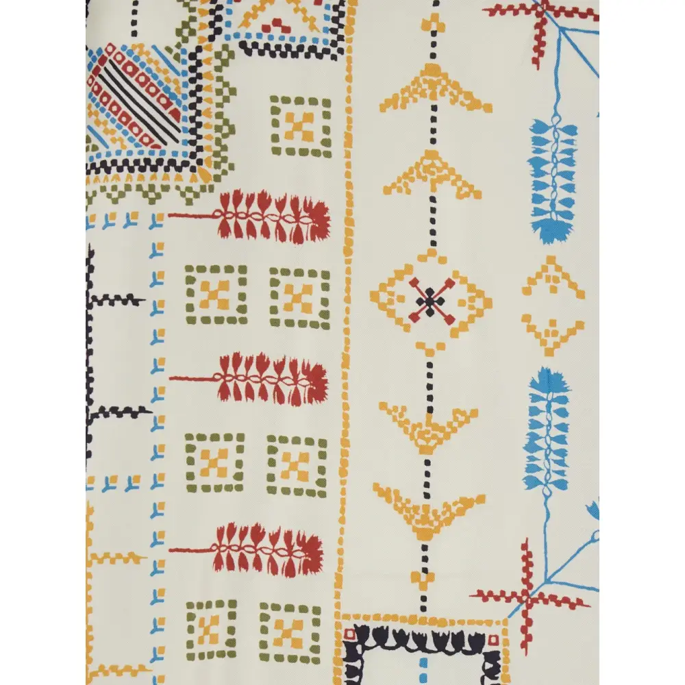 бежевый с геометрическим узором, V-образным вырезом и длинными рукавами