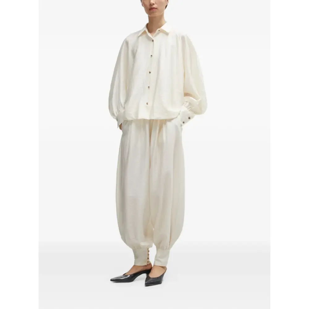 слоново-костного цвета, застёжка на пуговицы, рукава-буфы, манжеты на пуговицах, текстурированная ткань
