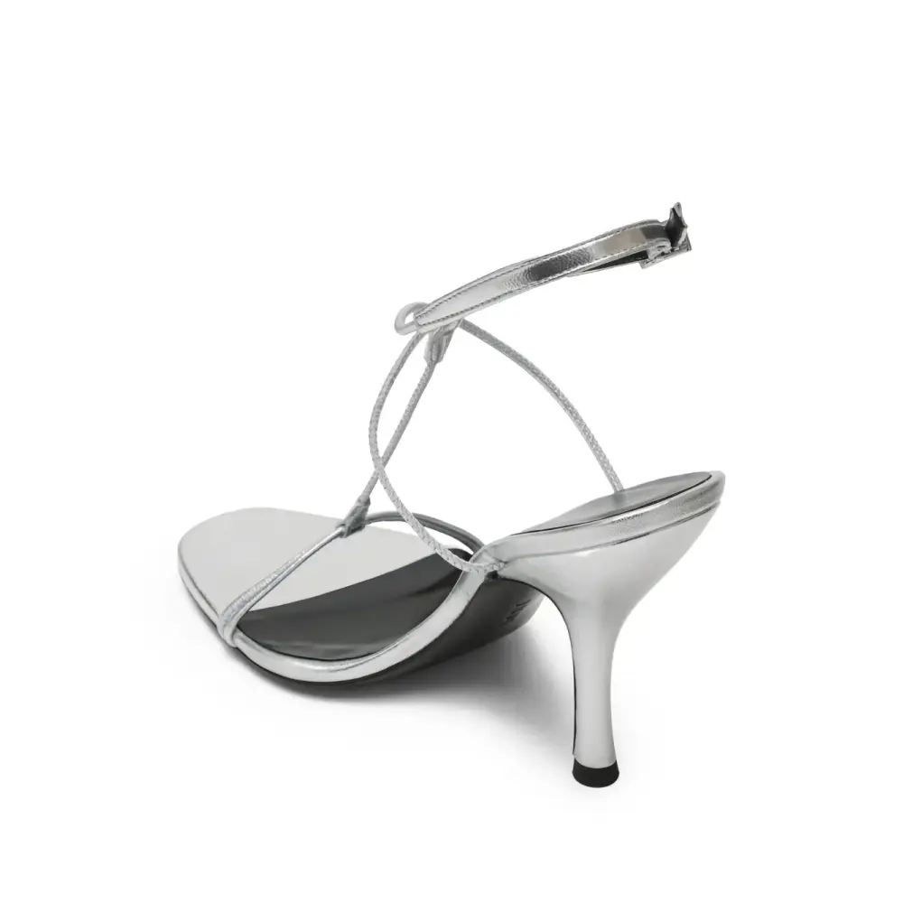 Туфли на шпильке серебристого цвета с ремешком в виде буквы T и застежкой-пряжкой
